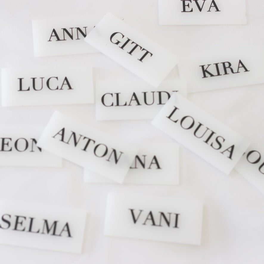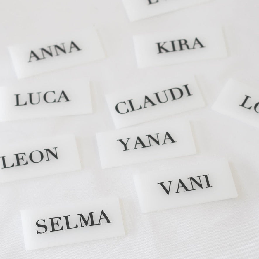 Platzkarte aus Acryl mit Namen - Schriftfarbe nach Wahl