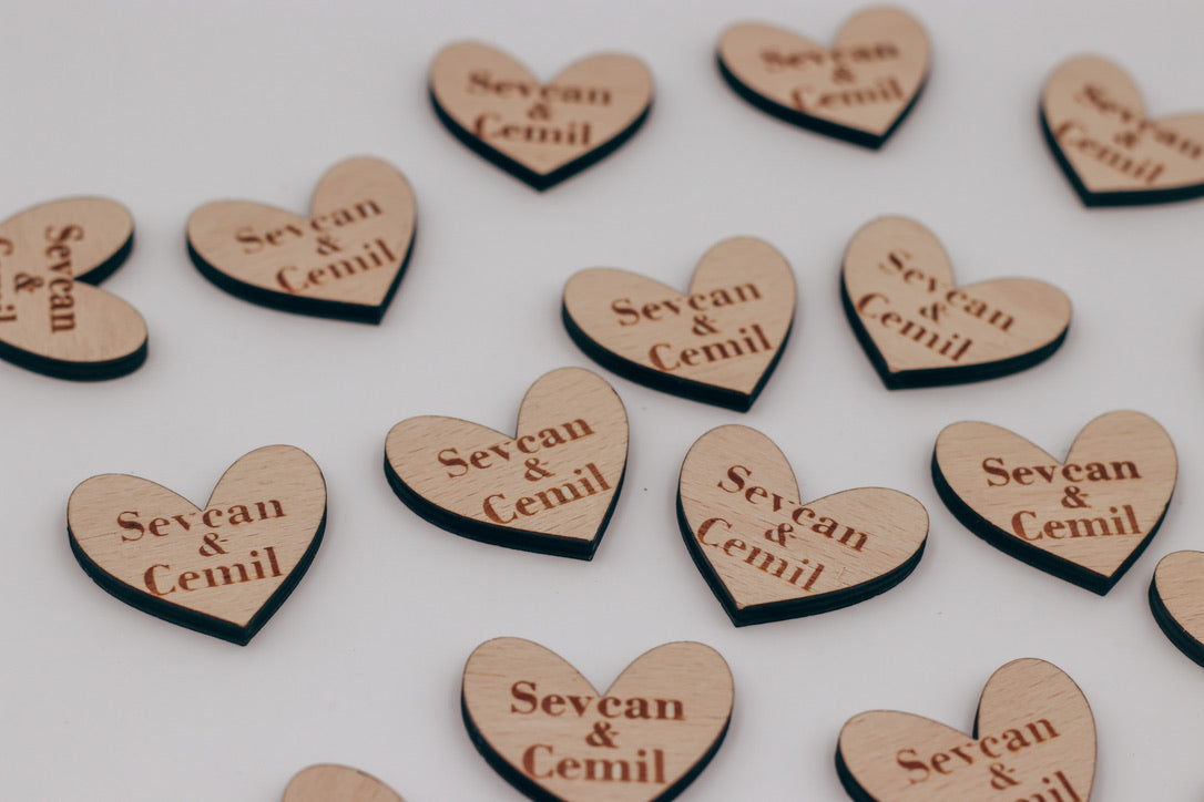 Diese süßen Holzherzchen eignen sich super als Tischkonfetti bei der Hochzeit oder für ein Bastelprojekt, z.B für DIY Gastgeschenke, Hochzeitskarten und und und.